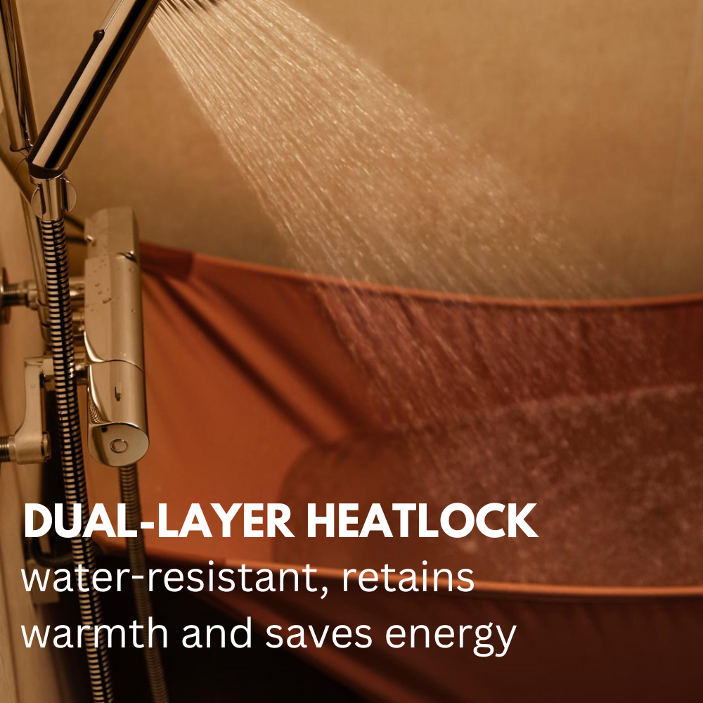 Handcrafted from FRP reinforced composite for durability and elegance that endures. With HeatLock dual-layer insulation, your bath stays warm for up to 45 minutes — because tranquility shouldn’t be rushed.