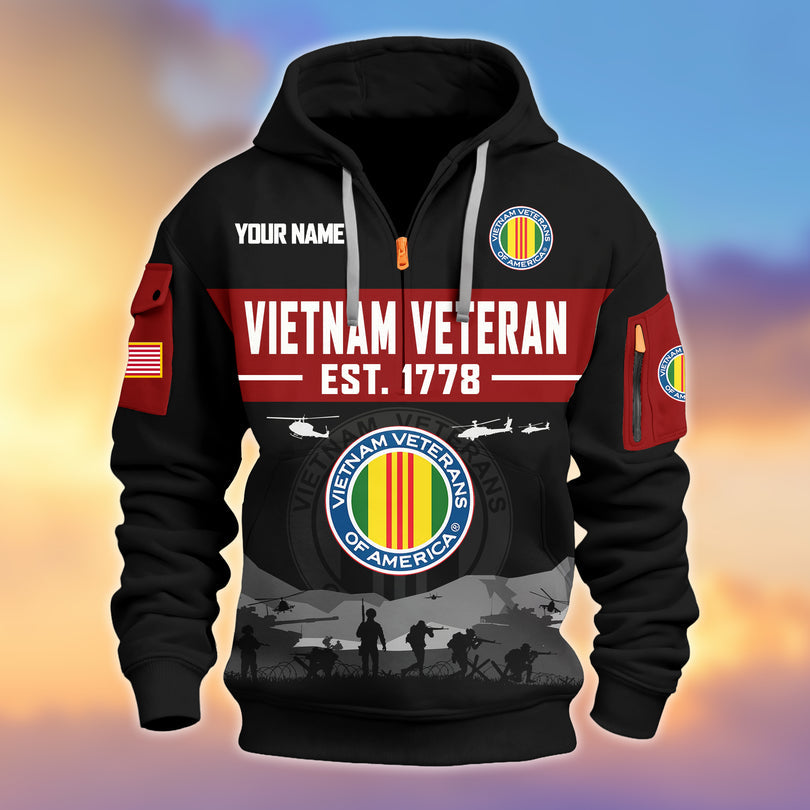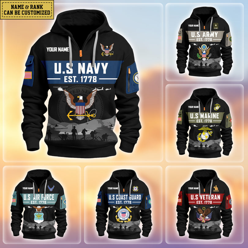 Personalized Veterans Half-zip Hoodie, Custom Name Hoodie, Great Gift for Veterans Day Memorial Day ZIP10312501