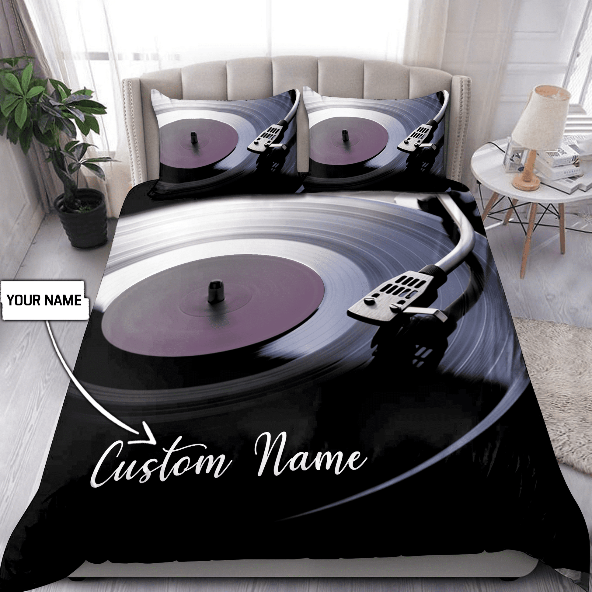 Premium Unique Vinyl Record Customized Name Bedding Set Ultra Soft and Warm VXK210502DS